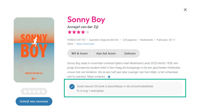 Via de koppeling vermeldt Hebban in de Klas bij een titel hoeveel exemplaren er in de eigen mediatheek beschikbaar zijn, waarna de leerlingen het boek kunnen lenen in de mediatheek of reserveren via Mijn AuraSpace of de Aura Library App.