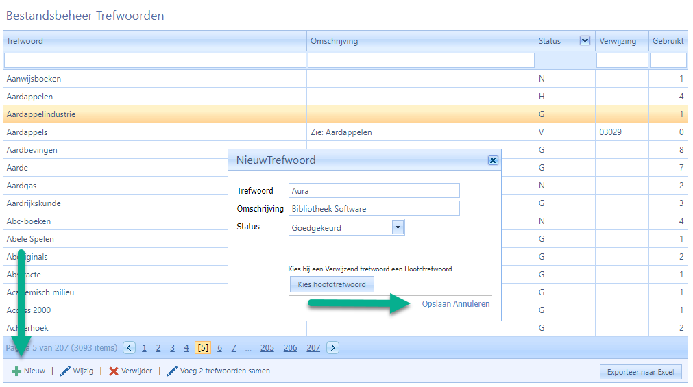 5 Bestandsbeheer Catalogus Beheer van de keuzelijst Trefwoorden Met de keuzelijst Trefwoorden kunt u: Nieuwe trefwoorden toevoegen Trefwoorden wijzigen Trefwoorden verwijderen Zie-verwijzingen maken Figuur 5-2: Scherm voor het invoeren/wijzigen van een trefwoord.