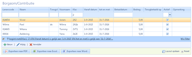 - Gebruik het filter om bijvoorbeeld alleen maar records van dit schooljaar te zien.