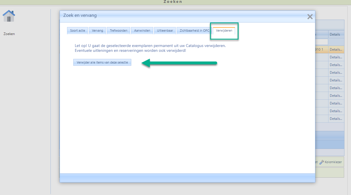 Als u niet alle exemplaren wilt verwijderen, klik dan op de knop Annuleren en kies vervolgens ‘Exemplaar verwijderen’ (zie volgende paragraaf). - Klik op de knop OK als u alle exemplaren van deze titel wilt verwijderen