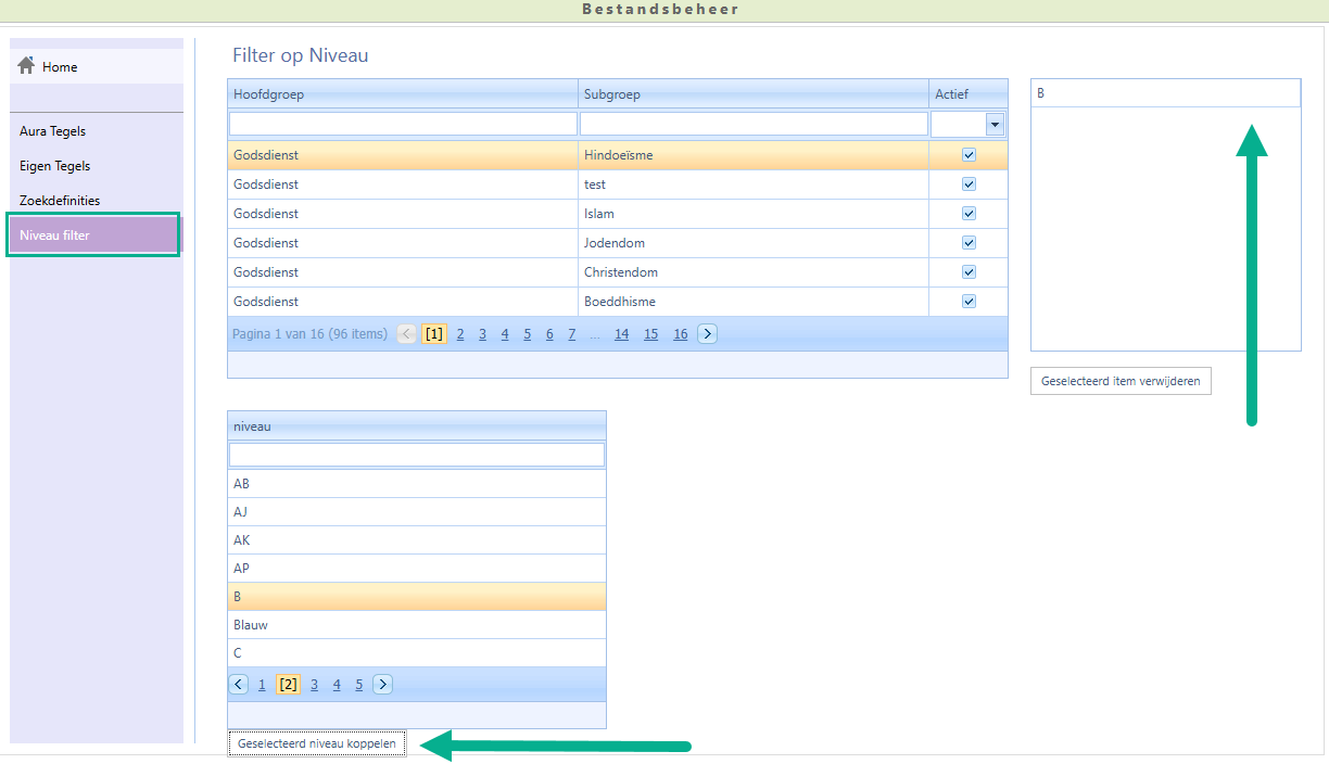 3. Kies onder niveau het niveau waarop u het resultaat in de (sub)groep wilt filteren.