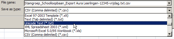 - Kies uit het lijstje van mogelijkheden ‘Unicode Tekst’