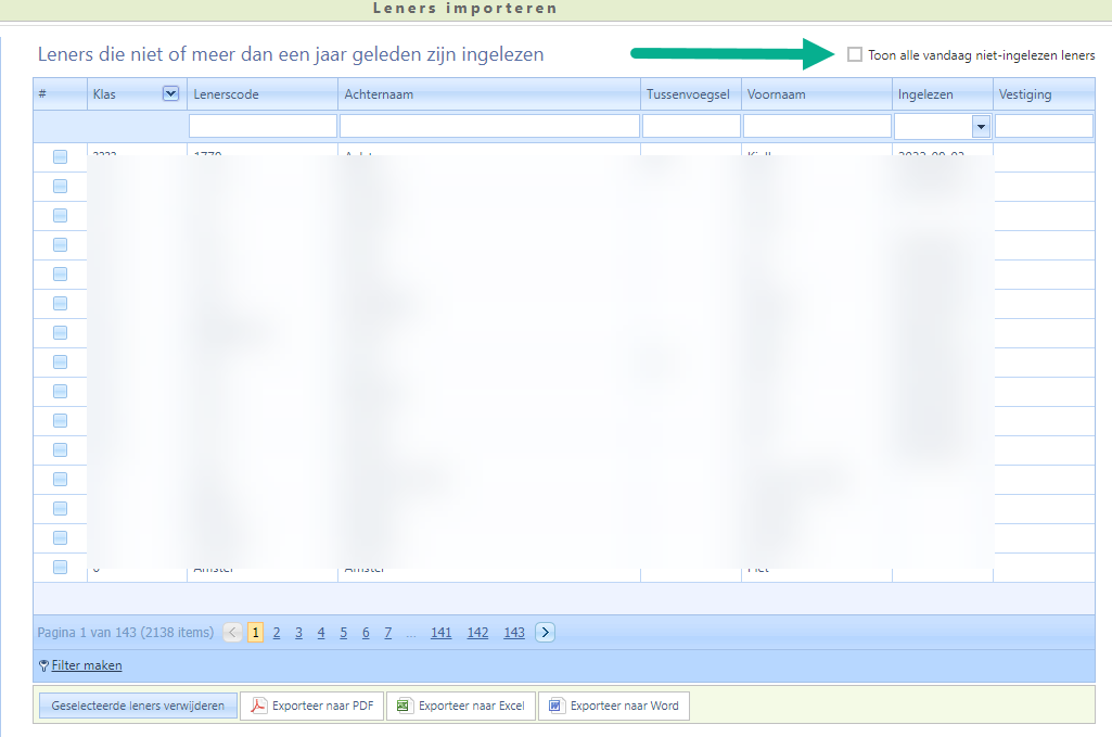- Klik op de knop Lijst van leners in het lenerbestand maar niet ingelezen.