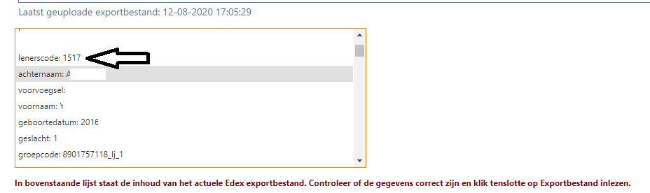 Om te voorkomen dat leners dubbel in het bestand ingelezen worden kunt u ook checken of bij de lenerscode in het exportbestand een korte code (maximaal 5 posities) staat: