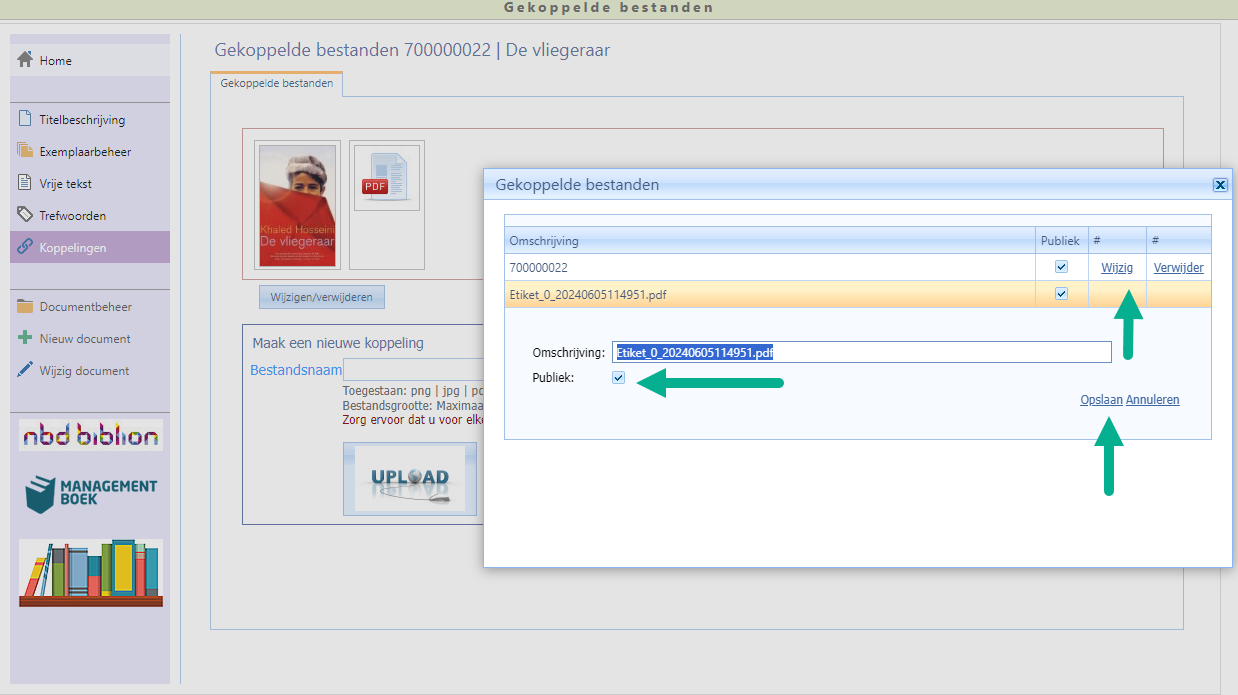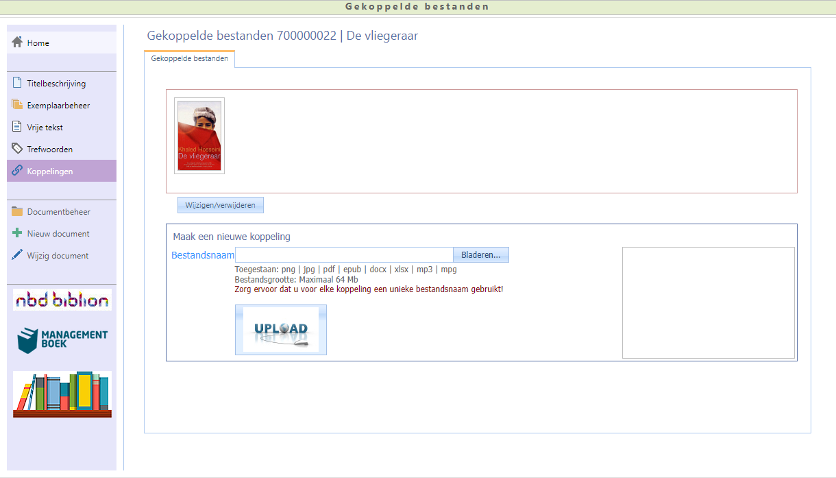 Het koppelen van andere bestandstypen gaat op vergelijkbare wijze. De volgende bestandsformaten kunnen aan een titel worden gekoppeld: