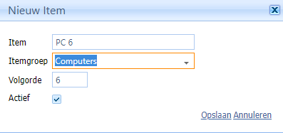 Actief geeft aan of het item zichtbaar is tijdens het plannen. U kunt een bepaald item hiermee dus ook tijdelijk “uitschakelen” of “blokkeren”.