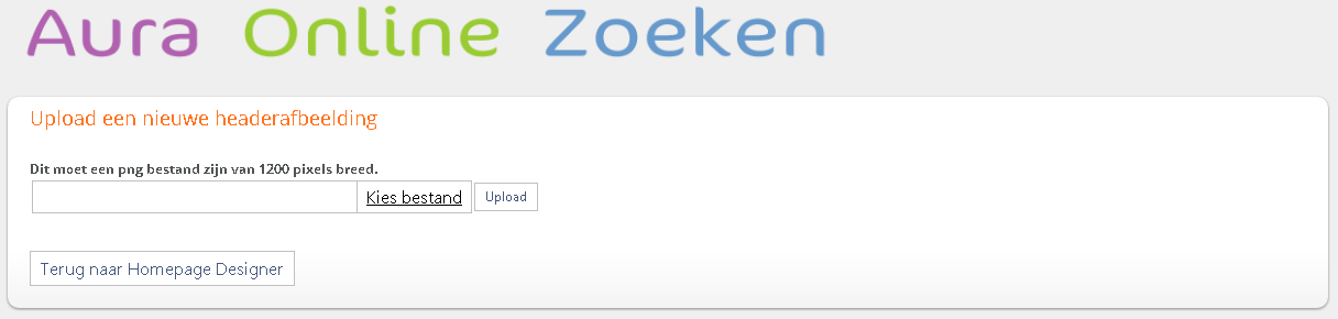 U kunt de tekst Aura Online Zoeken boven aan de homepage vervangen door het logo of een foto van uw eigen organisatie. U kunt dit element niet verwijderen.