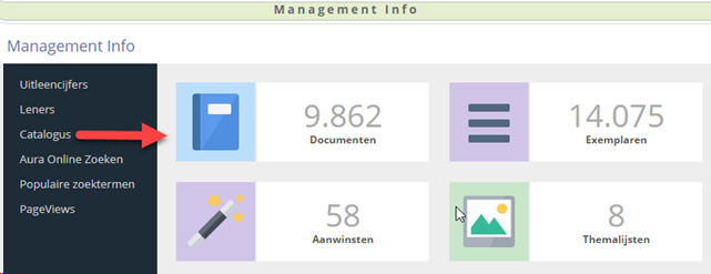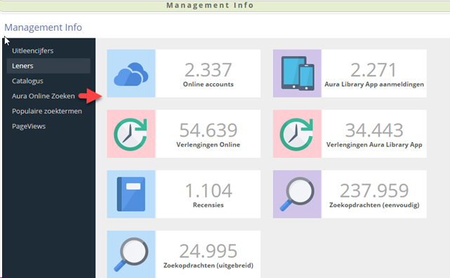 De optie Management informatie geeft inzicht in de actuele stand van zaken qua uitleningen, catalogus en zoekacties.