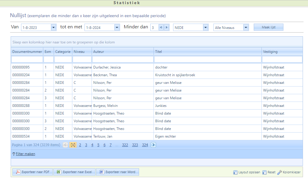 - Kies Aura Uitleenadministratie | Statistiek | Nullijst