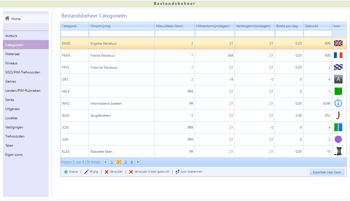 Elk document heeft een categorie en een materiaal. Wordt de uitleencriteria per categorie gewijzigd, controleert u dan ook of uitleencriteria per materiaal ook gewijzigd moet worden.