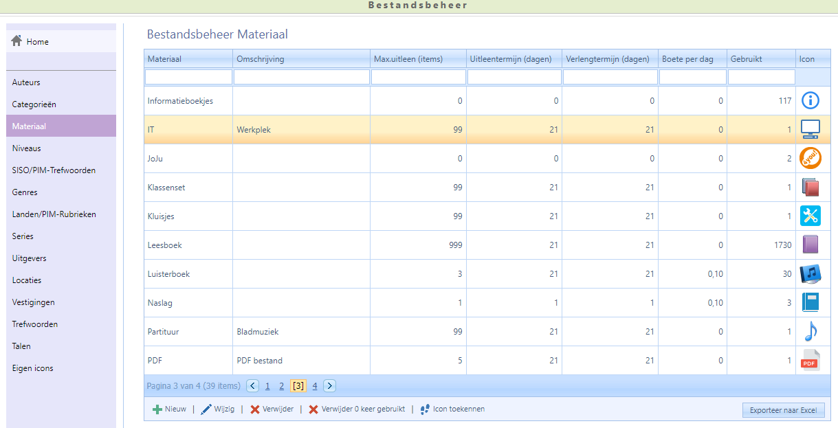 Elk document heeft een categorie en een materiaal. Wordt de uitleencriteria per materiaal gewijzigd, controleert u dan ook of uitleencriteria per categorie ook gewijzigd moet worden.