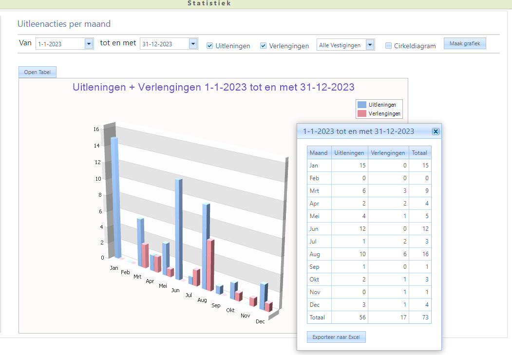 - Kies Aura Uitleenadministratie | Statistiek | Uitleenacties per maand