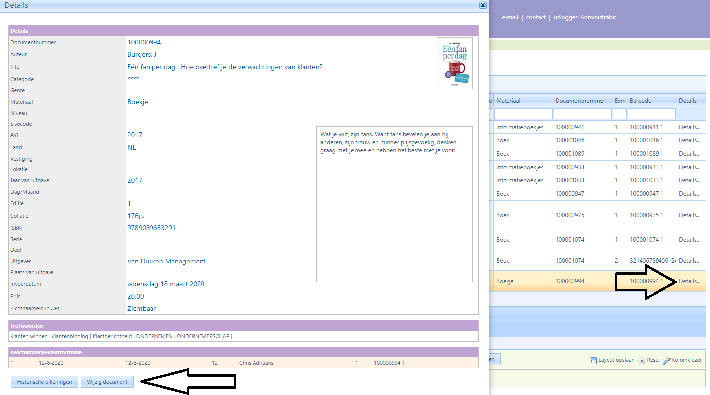 Bij Raadplegen – Reserveren zijn de velden, die via de kolomkiezer toegevoegd kunnen worden uitgebreid met: Genre, Niveau en Uitgeleend.