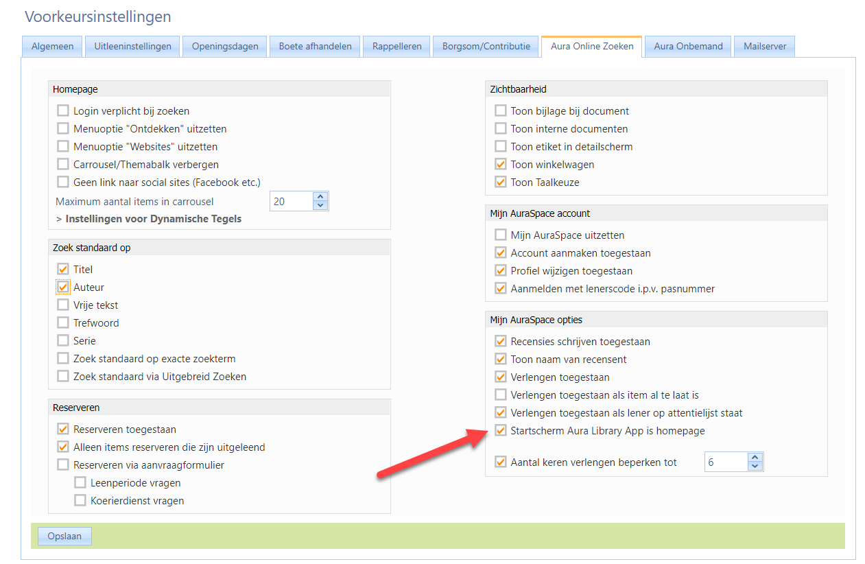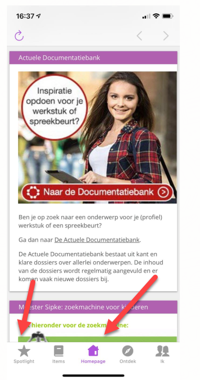 Via de voorkeursinstellingen kan aangegeven worden of (app)gebruikers als beginscherm de spotlight zien of de homepage. Belangrijk wel is dat de gebruiker de app heeft bijgewerkt naar de laatste versie.