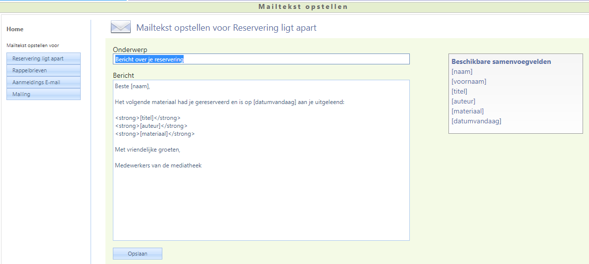 Via de mailtekst voor de reserveringsmail kan ook de optie “Vanaf [datumvandaag]” opgenomen worden.
