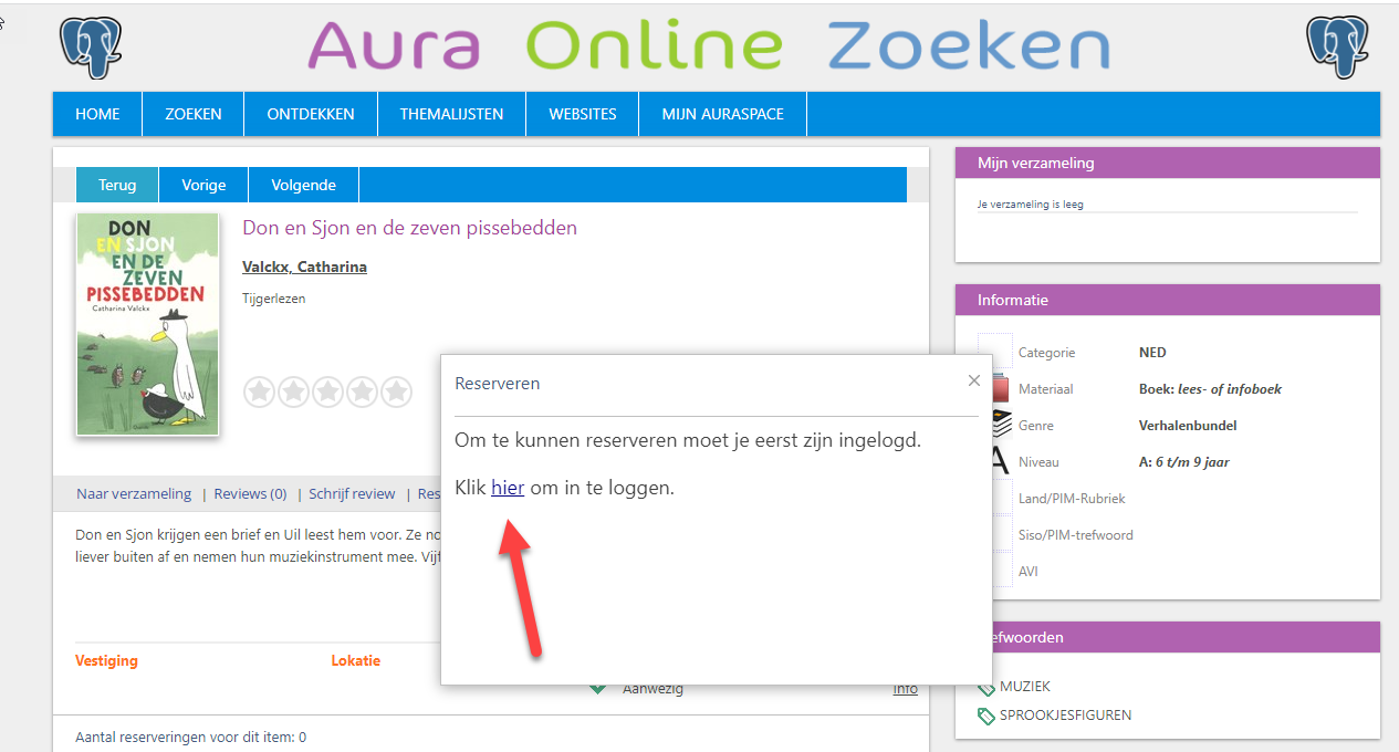 Als men reserveert zonder te zijn ingelogd verschijnt nu een pop-up venster met een link om meteen in te loggen. Na succesvol inloggen komt de gebruiker weer terug in hetzelfde detailscherm en kan vervolgens het gekozen item meteen reserveren.