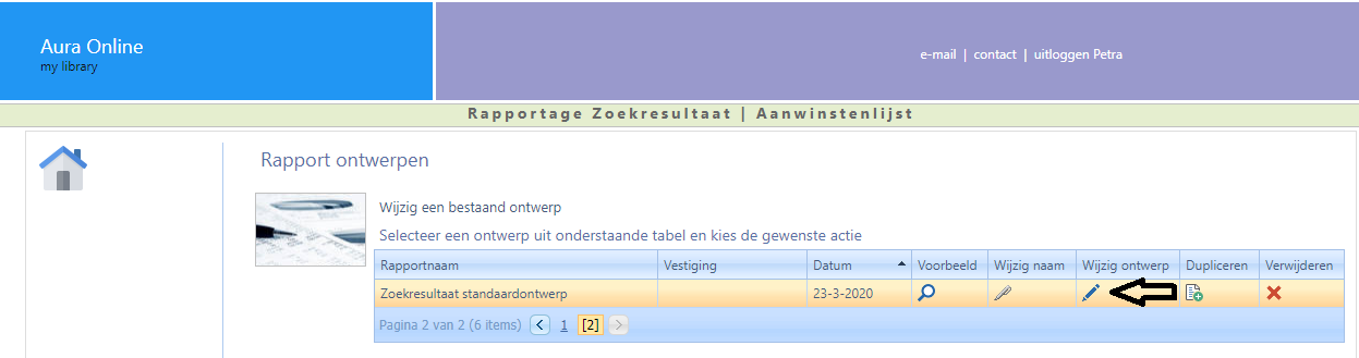 - Open het Standaard Rapportontwerp voor het zoekresultaat door onder "Wijzig ontwerp" te klikken