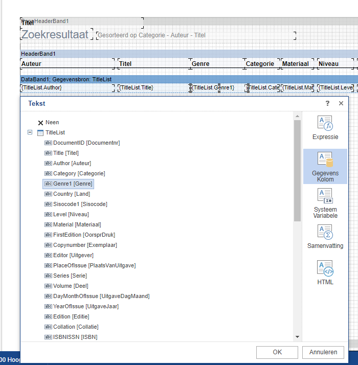 - Dubbelklik op het gekopieerde veld en kies het veld Genre uit de Gegevens Kolom.